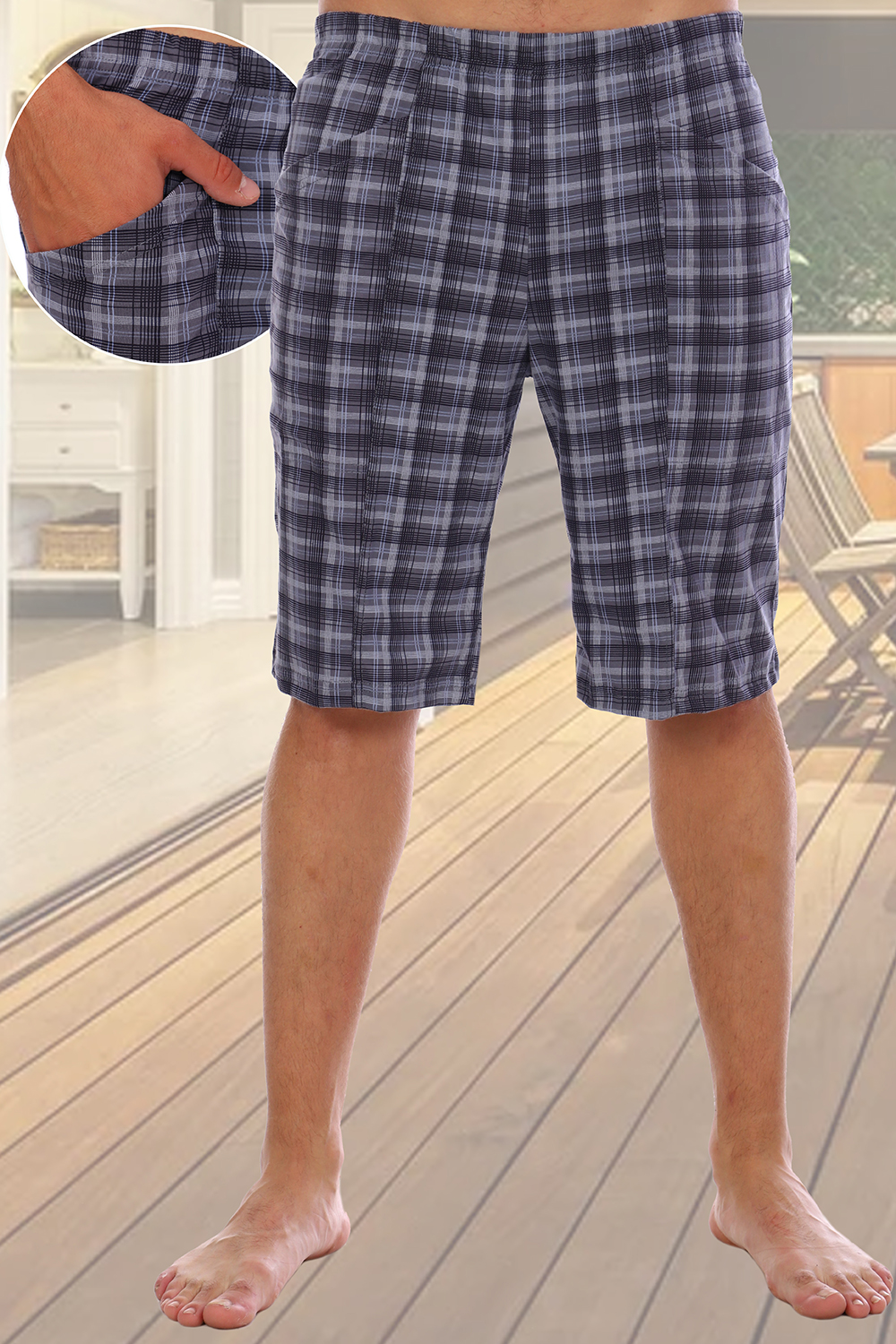Мужские шорты из 100% хлопка, карман накладной отстрочен на распошивальной машине с двух сторон.